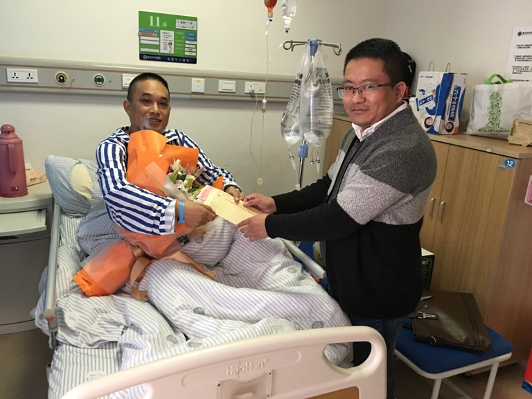 2017年10月19日下午,四川省強(qiáng)波電力工程有限公司派代表到南充中心醫(yī)院探望公司工程部員工潘國禮,并為他帶去了慰問品和公司全體同事的關(guān)心。