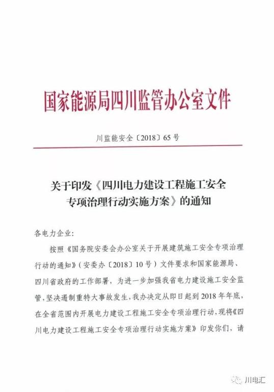 安全生產(chǎn)】關(guān)于印發(fā)《四川電力建設(shè)工程施工安全專(zhuān)項(xiàng)治理行動(dòng)實(shí)施方案》的通知