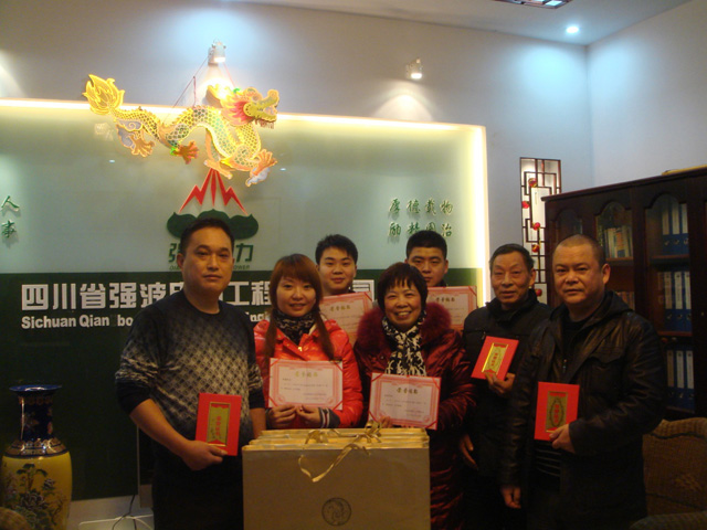 在2011年里,我公司員工團結一心,積極進取,始終堅持“孝忠義做人,老實人做事”的理念,為公司躍上新的高度而拼搏奮斗。 在這一年里,公司涌現(xiàn)出一批“孝忠義做人,老實人做事”的典型。為激勵廣大員工爭先創(chuàng)優(yōu),公司通過民主的選舉評議后,決定對蒲禮成、官成興、潘國禮、羅娟、孫泉、劉雨、周磊7人授予“優(yōu)秀員工”稱號并給予物品獎勵。希望公司全體員工以此為榜樣,在2012年的工作中再接再厲,不怕艱難,繼續(xù)奮斗,發(fā)揚強波精神!